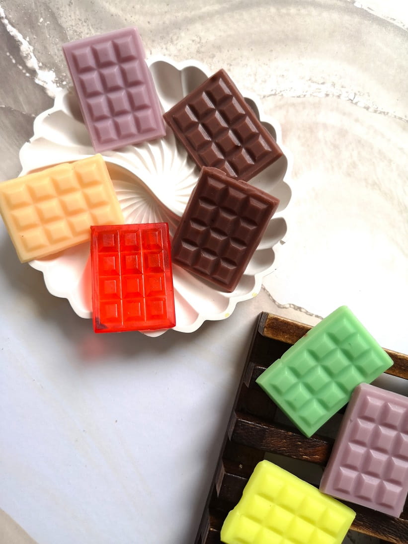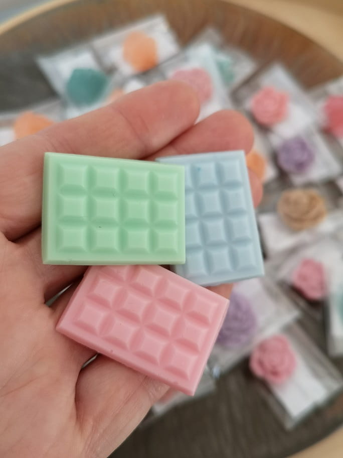 - pachnące mini mydełko glicerynowe w kształcie tabliczki czekolady