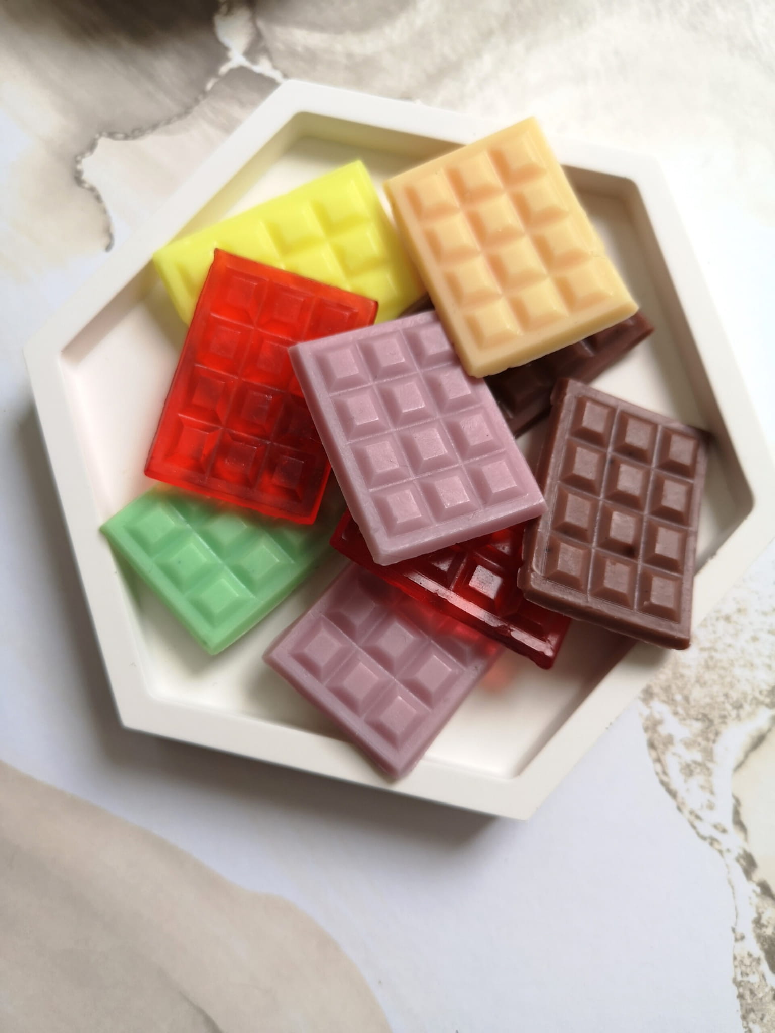 Mydełko glicerynowe pachnące w kształcie czekolady. Różne kolory i zapachy. Wyjątkowy upominek, pachnący i kolorowy, na urodziny, imprezę.