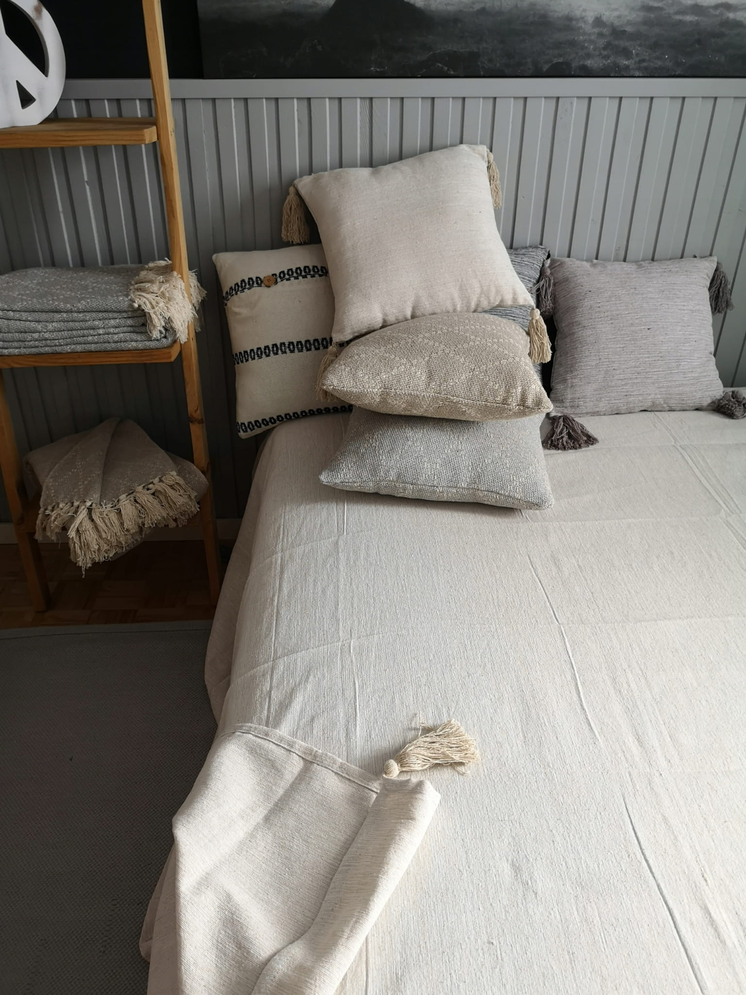 Narzuta bawełniana boho loft Carmen 200x220 chwosty melanż ecru NA PREZENT